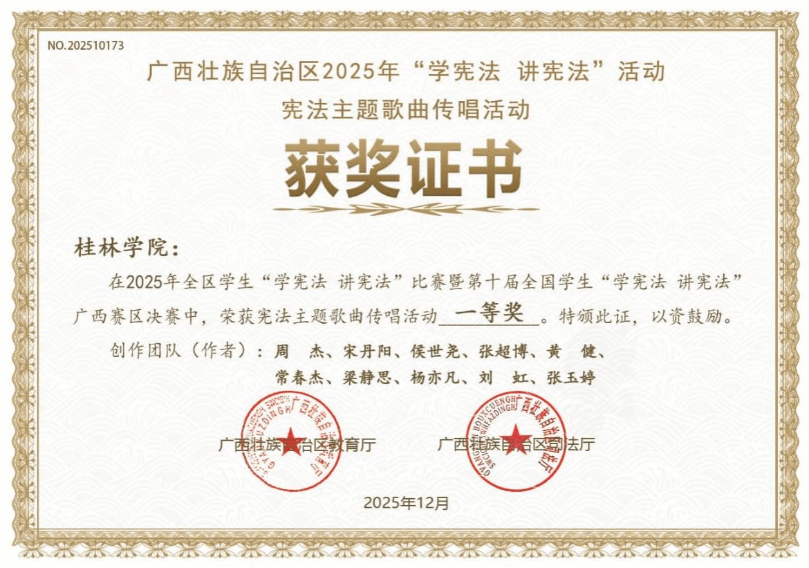 近日,自治区教育厅、自治区司法厅联合公布了2025年全区学生“学宪法 讲宪法”系列活动各项比赛获奖结果。我校师生在比赛中表现突出,斩获多项荣誉,充分展现了我校法治教育的丰硕成果和师生良好的法治素养。