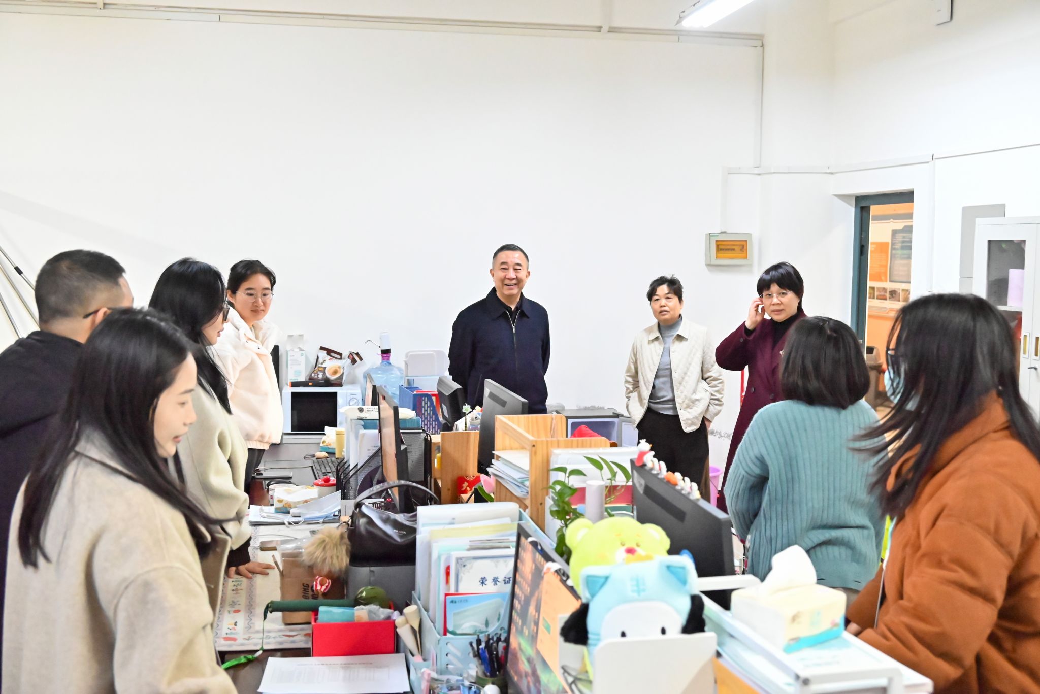 检查组到各二级单位开展检查,与教职工亲切交谈