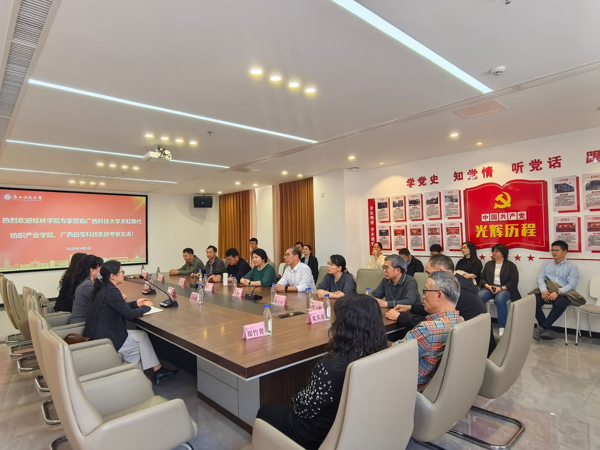 为学习借鉴现代产业学院建设的先进做法,进一步提升应用型人才培养质量,4月3日上午,副校长杨庆庆率队一行25人赴广西科技大学开展专题学习交流。广西科技大学副校长李健及相关部门负责人热情接待并陪同考察。