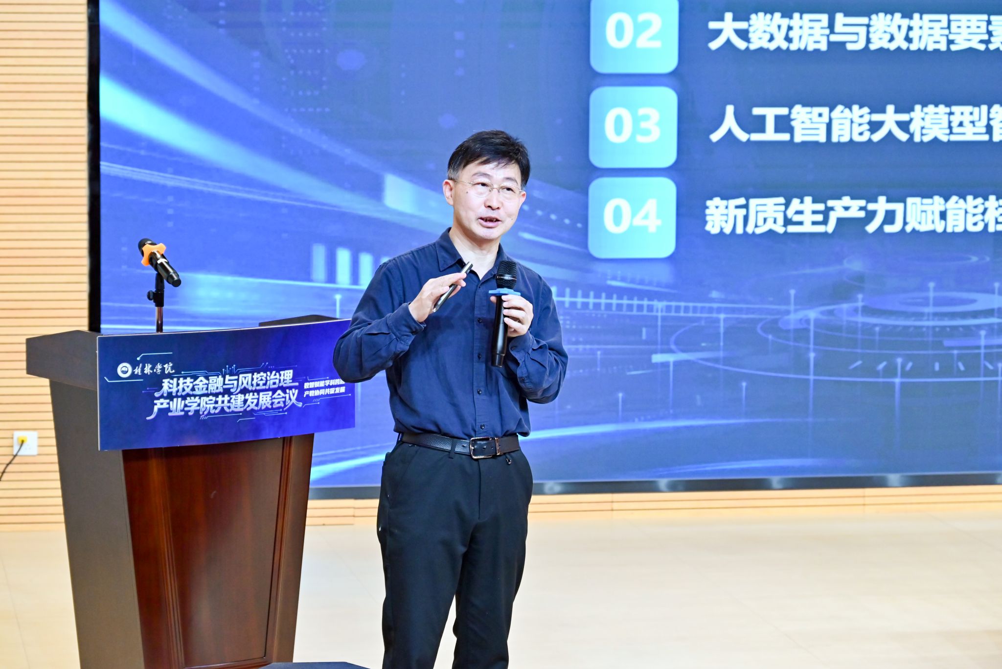 吴郭泉在会上致辞。他指出,当前金融行业数字化、智能化转型加速,成立科技金融与风控治理产业学院,是学校顺应行业发展趋势、深化产教融合、服务地方经济社会发展的重要举措。他表示,学校科技金融与风控治理产业学院将立足应用型人才培养、校协企协同育人、服务地方产业升级三大定位,推动课程体系、实践教学与行业需求深度融合,打造校协企合作创新平台与应用型人才培养示范高地,为广西及桂林金融高质量发展提供人才支撑。
