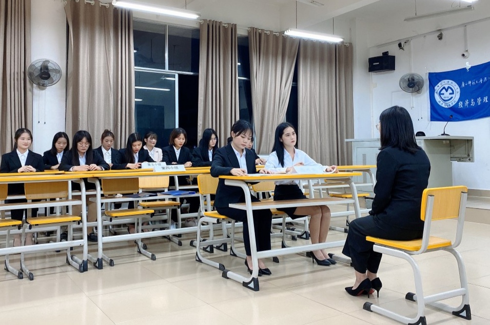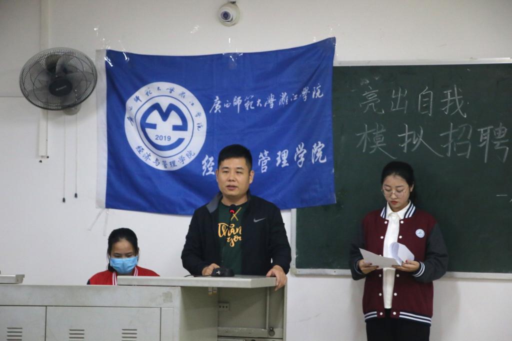 为了提高毕业生就业意识,提供一个学习职场知识、锻炼职场能力的舞台,11月17日,经济与管理学院在1506教室举行“亮出自我——模拟招聘大赛”决赛。学院党总支副书记韩磊,辅导员王海玲、许莹、贺春先、郝环一参加此次活动并担任评委。