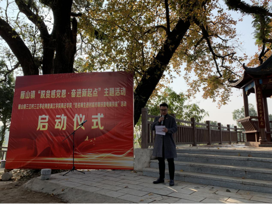 活动过程中,陈庭贺副区长就“脱贫感党恩,奋进新起点”主题活动启动仪式致辞;三立村村党支部书记联系脱贫攻坚工作开展的前后变化,总结了近年来三立村的脱贫工作成果;我院党总支书记陈俊杰表示,希望通过校地扶贫共建活动,真正实现服务地方经济的应用型复合型人才培养,通过电商助农实战,让学生明确自身的使命担当,提升其综合素质,在社会实践中增长才干,主动投身乡村振兴战略实施,勇作担当民族复兴大任的时代青年。
