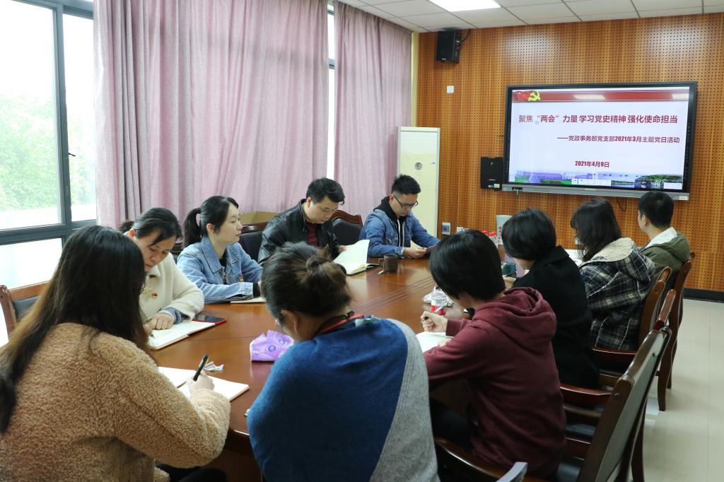 4月9日上午,党政事务部党支部在知善楼8207会议室开展“聚焦‘两会’力量 学习党史精神 强化使命担当”主题党日活动。