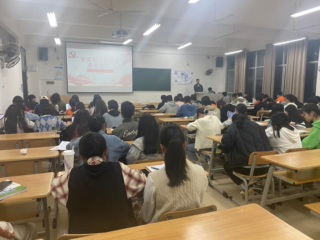 辅导员金云亮讲述了“小萝卜头”宋振中在狱中渴望自由,渴望学习的故事。他指出,历史是一面镜子,它照亮现实,也照亮未来,学习党的历史,了解我们的过去才能看清前进的方向。党史记录着新中国从无到有,从小到大,从弱到强,从一个胜利走向另一个胜利,中国带领人民创造了一个又一个辉煌,一个又一个奇迹,这其中的经验和智慧无不凝结于党的历史。