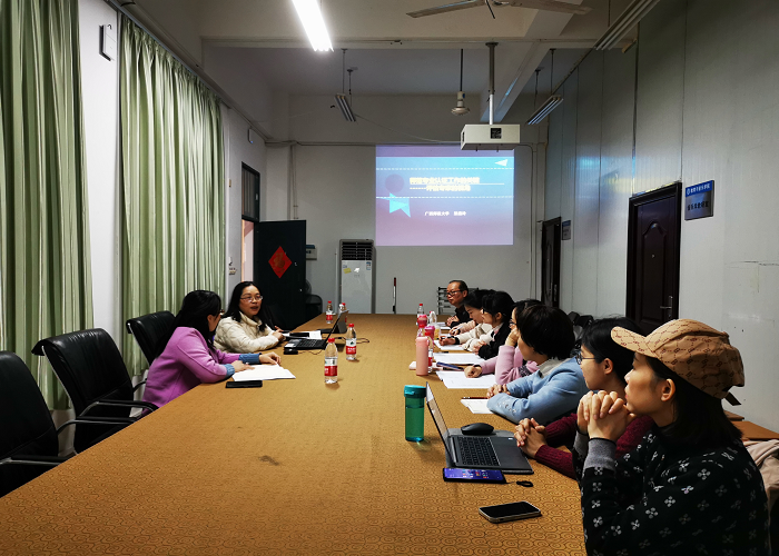近日,学校首席教授、广西师范大学教育学部梁燕玲教授,应邀到教育与音乐学院为学前教育专业全体教师进行了师范专业认证工作的指导。教育与音乐学院院长彭超主持讲座,副院长黄小玲以及学前教育专业全体教师参加了此次会议。
