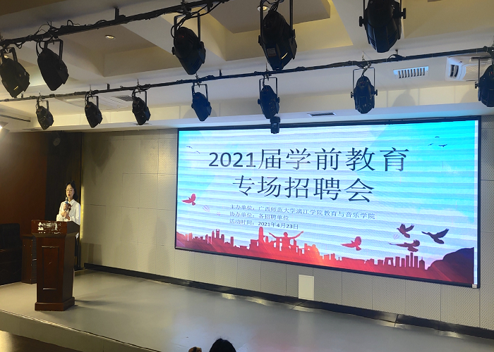 为了切实推进毕业生就业工作,更好地拓宽毕业生就业渠道,4月23日上午,教育与音乐学院在至善讲堂举办2021届学前教育专场招聘会。华南师范大学附属广州华万幼儿园和华南师范大学附属光明星河幼儿园两家招聘单位到校为学生做招聘宣讲,2017级学前教育学生参加了此次宣讲会。