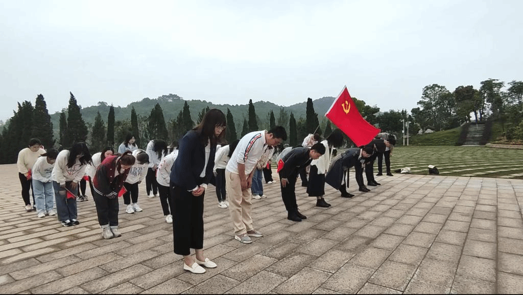 走进纪念馆大厅,映入眼帘的是湘江战役立体群像雕像,红军将士们或扛枪冲锋、或举着红旗、或搀扶着伤员前进……一个个生动立体的形象再现了红军抢渡湘江时的壮烈场景,歌唱着红军长征英雄史诗,震撼人心。红军长征湘江战役纪念馆内大量珍贵图文、画作、影像,生动再现了红军长征故事:红三十四师师长陈树湘“断肠明志”的故事、“一袋干粮”的故事、飞夺泸定桥、强渡大渡河等,在场党员无不为之动容。随后,党员师生在邓克鹏老师的领读下重温入党誓词,让我们回望初心使命,坚定理想信念。最后在烈士纪念碑前,向湘江战役红军烈士三鞠躬,缅怀革命先烈、赓续共产党人精神血脉。