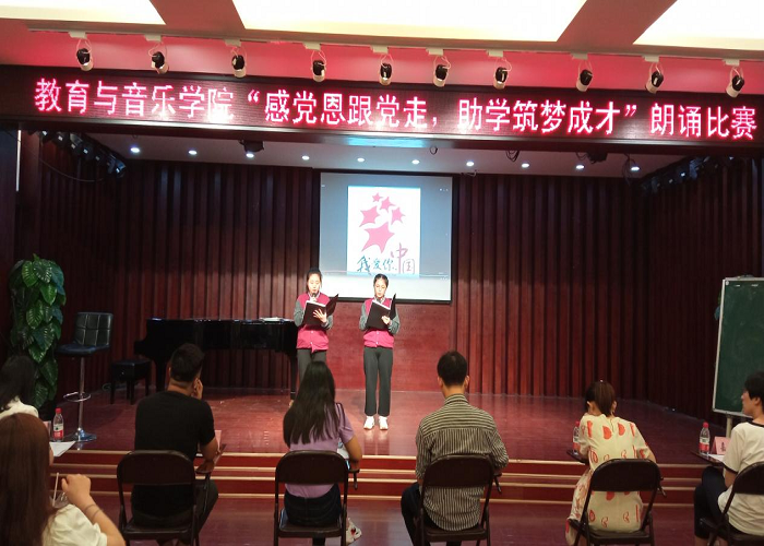 为庆祝建党100周年,培育受助学生的爱党爱国情感和感恩意识,进一步加强学院学生资助政策宣传工作,进一步促进教育公平、营造和谐的教育氛围,激励家庭经济困难学生克服困难、自强自立、努力成才。教育与音乐学院于5月14日下午三点在小音乐厅顺利举行“感党恩跟党走,助学筑梦成才”主题朗诵比赛,本次比赛邀请学院党总支书记周杰老师、副书记熊云云老师及各年级专业辅导员作为本次比赛评委。