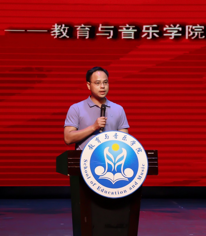 表彰大会最后,邓志平副书记做总结发言。他充分肯定了一学年以来教育与音乐学院所取得的成绩,对登台领奖的获奖师生表示祝贺。同时,邓副书记也指出了学院在工作、管理方面的不足和改进方向。邓志平副书记对教音学院提出了三点希望,一是继续深入推动党史学习教育,把党史学习与专业和日常融合;二是全员上下要加强团结,本着建设和谐务实的态度,形成工作合力。三是大力营造风清气正的、积极进取的团队文化,在文化氛围感召下,共同成长进步。