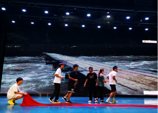 图:体育与健康学院团支部期末考评大会上学生表演党史教育情景剧