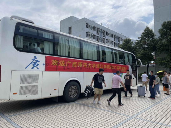 据悉,后勤保卫处副处长秦家荣及校车队师傅们不辞辛劳,帮助毕业生搬运行李,提醒旅途安全,叮嘱同学们“常回家看看”。毕业生乘坐在离别的校车上热泪盈眶,回忆起四年前学校用校车将他们接到这片学习的沃土,深深表达着无限感慨。温馨的言语、贴心的行动让2021届毕业生倍感亲切,同学们表示一定不负母校的期望:不忘初心,学以致用,迈向社会勇敢的挑战创新,去体现自身价值、实现人生理想,在不久的将来为学校的发展增添光彩和奉献锦薄之力。