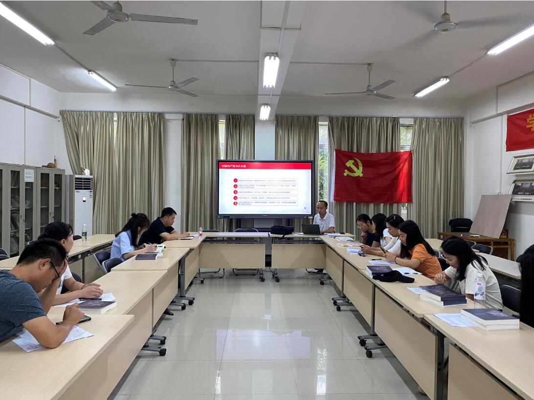 教工党支部书记蒙晓伟以《百年党史告诉我们六个为什么》为主题,从“中国共产党为什们能、马克思主义为什么行、中国特色社会主义为什么好、信仰的味道为什么甜、艰苦奋斗的本色为什么美、党的靠山和底气为什么强”六个角度结合党史阐释了中国特色社会主义的优越性和中国共产党的先进性,并从六个方面对应指出了学习党史的目标和意义。