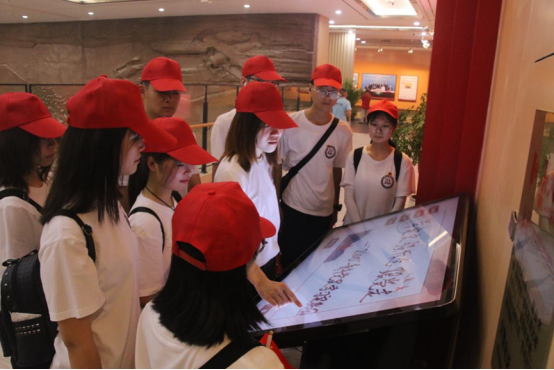 图:“2100”青年党史学习实践团团队成员在留言板上书写真诚的话语