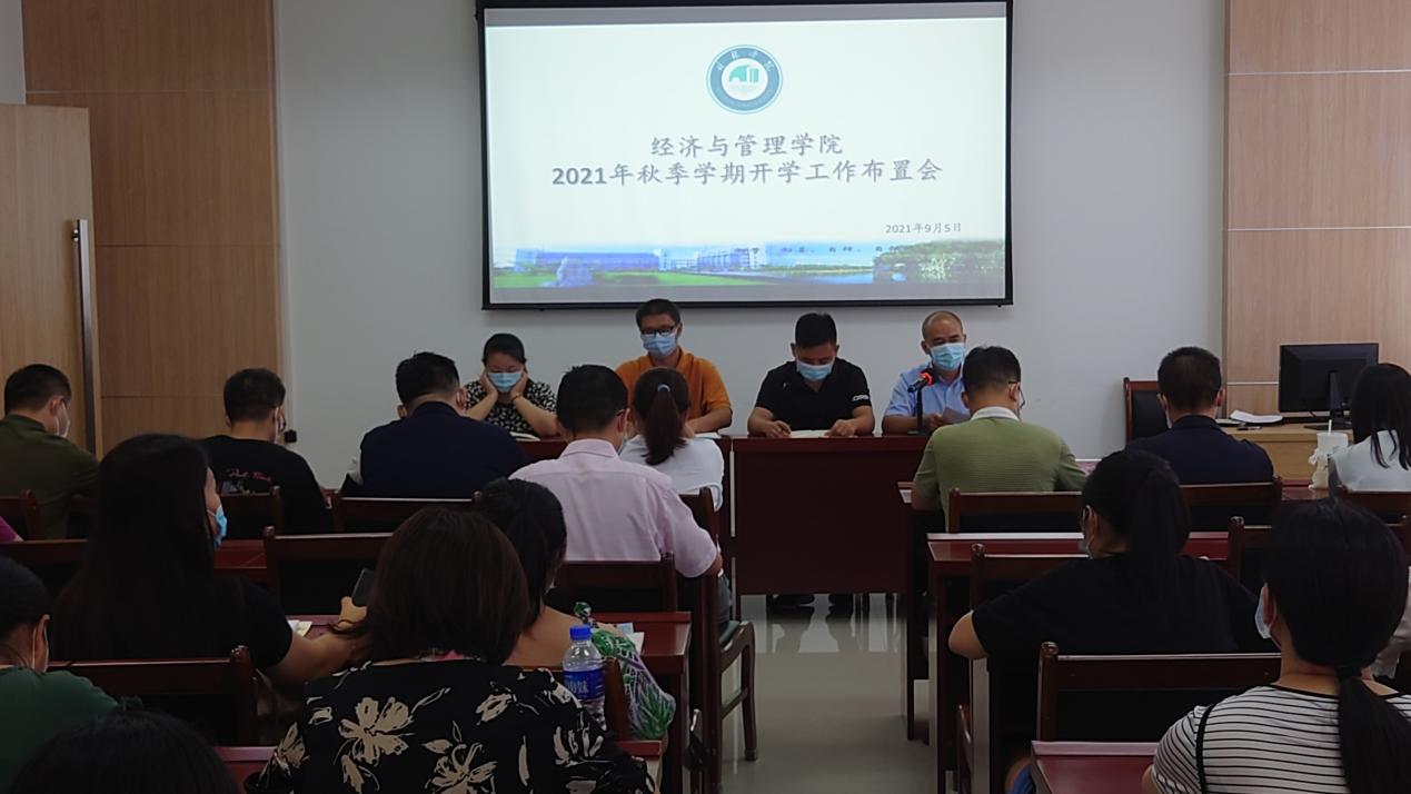 9月5日下午,经济与管理学院在图书馆C区3楼报告厅召开2021年秋季学期开学工作布置会,学院领导班子、全院教职工参加会议。