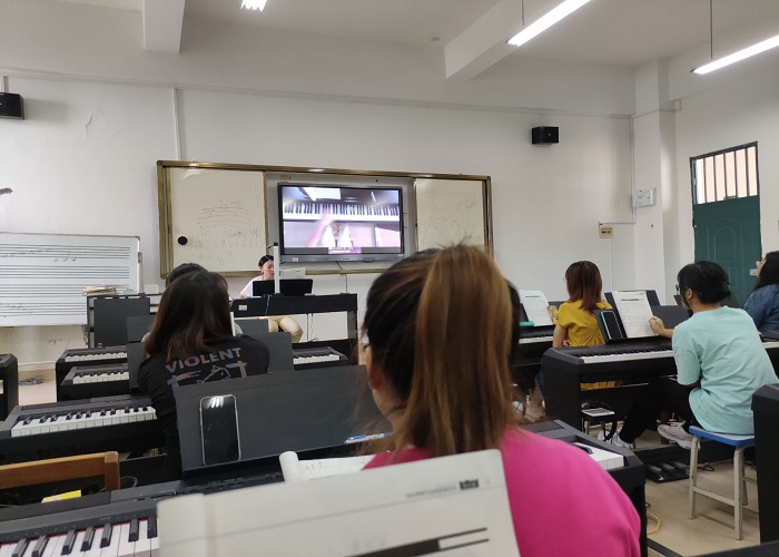 图:许莹琳老师正在给2020级学前教育专业的同学们讲解《钢琴基础与儿歌弹唱》