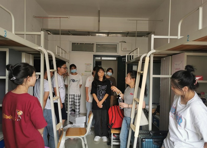随后,副院长江帆与音乐学技能教研室副主任贺伟、教学秘书潘桥娟一走访2021级音乐学新生宿舍,看望了已经到校的学生。江帆对新生进行了亲切的问候,向学生进行初步的专业介绍,了解他们艺考情况,就2021级音乐学新生入学测试进行了说明,让同学们做好准备,迎接新的挑战。新生对住专业老师的提前慰问表示感谢,特别是对即将到来的专业入学测试有了提前了解,纷纷表示要积极准备,沉着应对,考出好成绩。