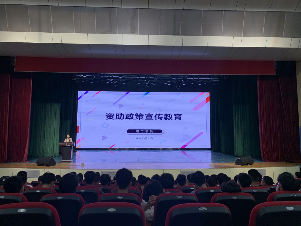 为切实发挥好共青团服务高校立德树人根本任务和人才培养中心工作重要作用,同时,为贯彻落实国家相关资助政策,切实做好资助政策宣传工作,9月15日晚,理工学院在弘善讲堂召开了主题团课暨高校资助政策宣讲会,本次宣讲会由学院团总支副书记蓝贤斯主讲,全体2021级新生参与了此次宣讲会。