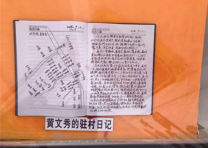 图:满满的驻村笔记,记录着黄文秀的扶贫攻坚的日日夜夜,也记载着一个共产党的初心使命。