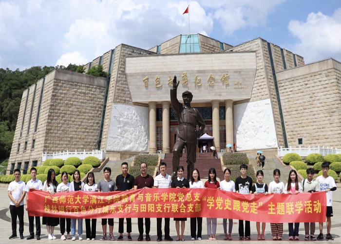 教育与音乐学院党总支与桂林银行百色城东支行党支部开展党史联学,共同前往百色脱贫攻坚展示馆和百色起义纪念馆进行现场教学。