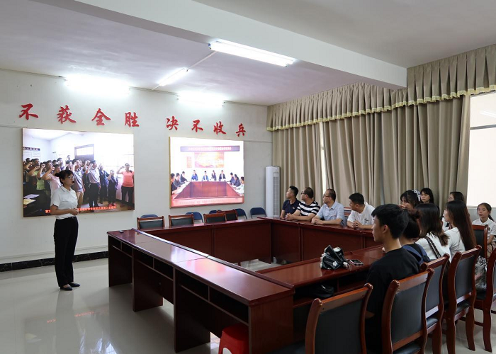 图:在讲解员的带领下,参观了村委广场上的黄文秀事迹展宣传长廊、黄文秀同志办公、生活的地方。