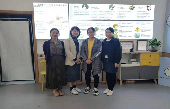 下午黄副院长一行来到柳州小红帽幼儿园(总园)看望了实习学生,并就实习生的适应和跟岗情况进行了解。紧接来到对小红帽幼幼园、糯糯团儿童成长中心等2个早期教育机构进行了参观考察。糯糯团覃春妮园长、武丹老师与我院老师就早期教育的师资技能和知识基础、课程设置、环境创设、家园沟通与合作等进行了深入的交流,同时还商议双方在实践教学教基地方面的合作。