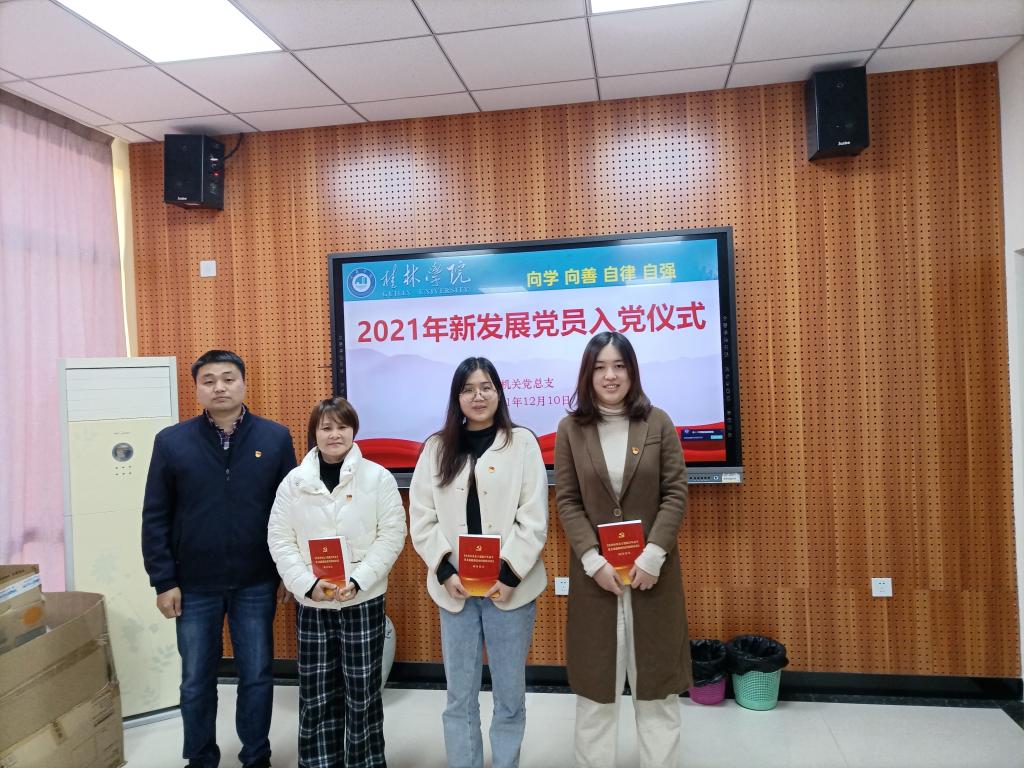 在中国共产党成立100周年之际,为增强党员政治意识,坚定理想信念,12月10日上午,机关党总支组织3名新发展党员在知善楼8207会议室举行了入党仪式,机关党总支全体委员、组织员、机关部分党支部书记参加此次仪式,本次仪式由机关党总支委员林榆峰主持。