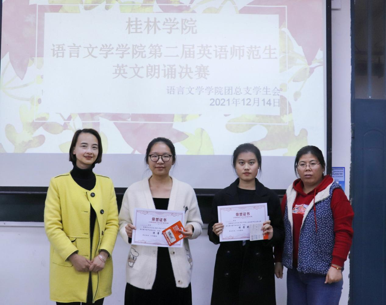为了进一步活跃校园文化气氛,丰富同学们的课余生活,激发同学们学习英语的热情,提高英语专业同学们的英语口语水平和个人朗诵能力,12月14日,语言文学学院在至善楼1303教室举办了第二届英语师范生英文朗诵大赛。本次比赛由语言文学学院陆海峡老师、欧炼芬老师以及2018级韦珍妮同学担任评委,刘秋雨、郁长远两位同学担任主持人。