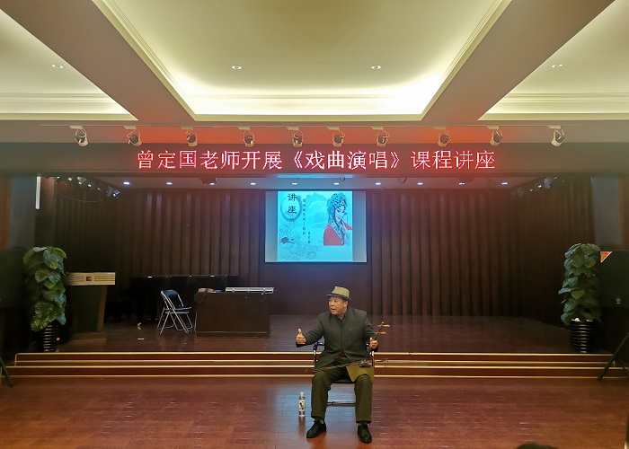 12月20日,教育与音乐学院邀请国家一级演员,原广西戏剧家协会副主席,桂林市戏剧家协会主席,原桂林市桂剧团副团长、桂林市彩调剧团团长曾定国老师在音乐演艺厅给19级音乐教育的学生开展《戏曲演唱》的课程讲座。