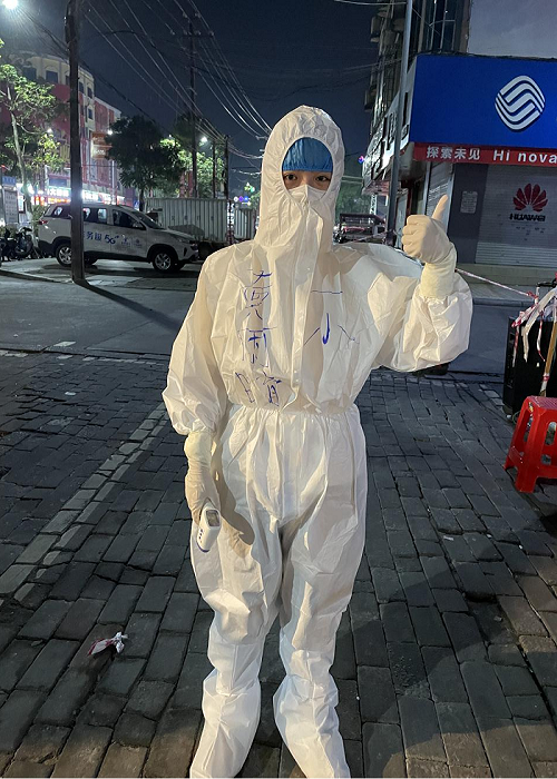 在此次行动中,黄雨晴同学用青春筑起坚固的防疫线,用行动彰显新时代新青年的使命与担当。感谢这次战“疫”的所有最美逆行者们,让我们手牵手为“东兴加油!”