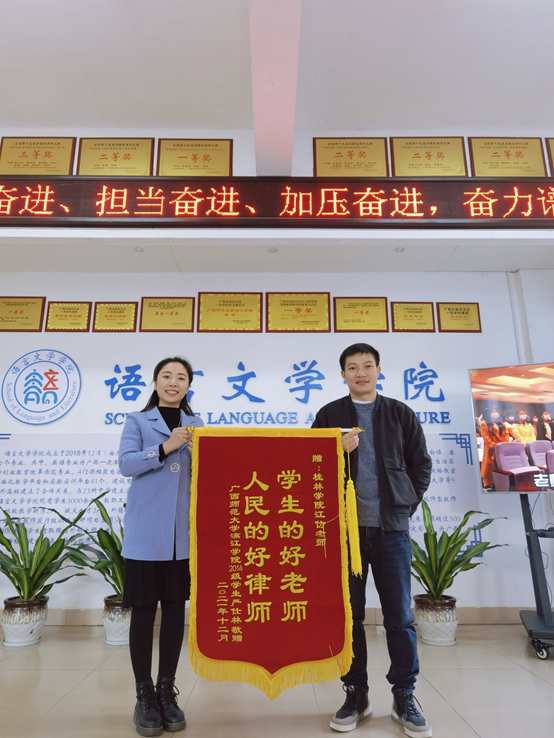 “学生的好老师,人民的好律师”,一面鲜红的锦旗赫然出现在语言文学学院党总支书记江仿的快递里,与这份特殊的“快递”一起邮寄来的还有一封感谢信。寄快递的正是我校2014级校友严仕林同学。