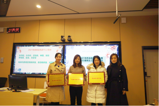 1月13日上午,商贸与法律学院/名淘与电商学院2021年终总结表彰大会暨2022届就业工作动员大会在2202智慧教室圆满召开。学院全体领导班子以及全体教职工参加了会议,会议由学院党总支书记陈俊杰主持。