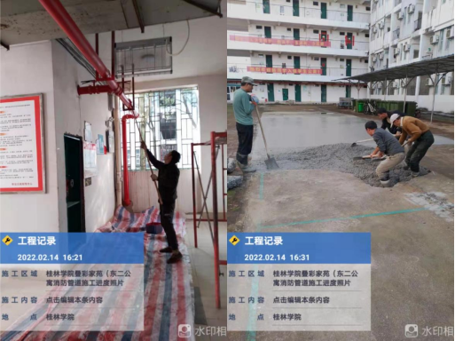 治安综合办对学校东二东三学生公寓消防管道施工改造。