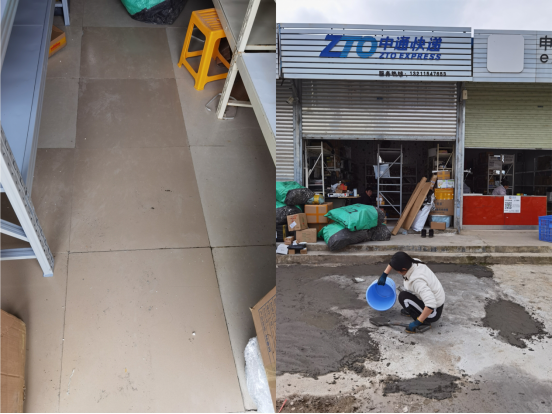 食堂商铺利用寒期进行店面整改,对油烟系统进行了全面清洗。同时,根据疫情防控需要,严格对食堂前厅后厨进行消毒,并加强食堂食品管理。中通快递店内瓷砖进行了修复和门前增加水泥磨平。