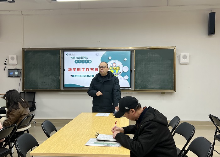 新学期已经开始。2月26日上午,教育与音乐学院在嘉善楼6242实训室召开新学期全体教职工会议布置新学期工作。