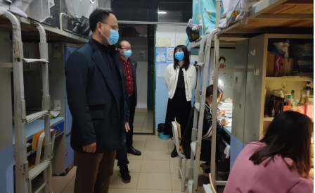 邓志平副书记带领学工、教务、合作发展等部门负责人,在教育与音乐学院领导的陪同下,首先走访了学生宿舍,了解学生按照防疫要求在寝室上网课的情况,看到各班学生都在利用电脑或手机上课,边听边记,学生的精神状态基本恢复到学习的状态,对学院的组织管理工作及教学安排表示满意。