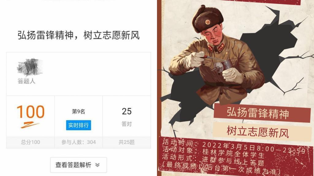 图为:我校学子参与“弘扬雷锋精神,树立志愿新风”线上知识问答活动