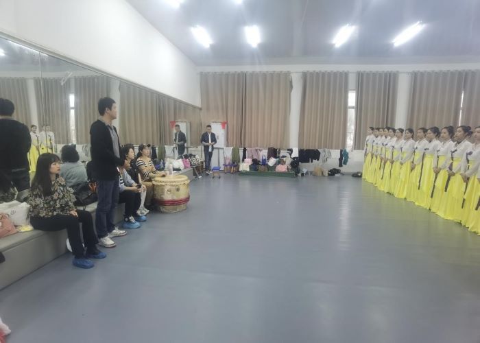 江帆副院长对桂林市文艺演出有限责任公司一行的到来表示热烈欢迎,对在共同授课的教学活动中给予学院师生的指导和建议表示充分的肯定和衷心的感谢。两所单位在央视春晚、历届漓江之声等各类文艺汇演中有过许多次深入的合作。此次共同授课模式,是教育与音乐学院舞蹈学专业落地校企合作的真招和实招,为提升我院舞蹈类人才培养和丰富舞蹈类课程设置提供了广阔的合作舞台。
