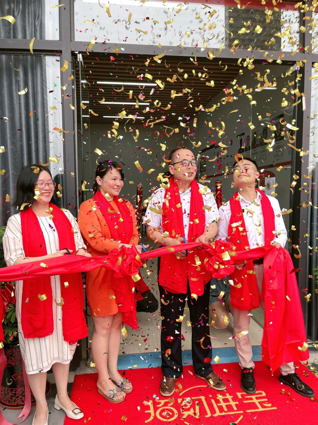 教育与音乐学院书记周杰、合作发展处处长秦丽芸、广州友财信息咨询有限公司CEO谢昌成共同为桂林市友财商务有限公司剪彩