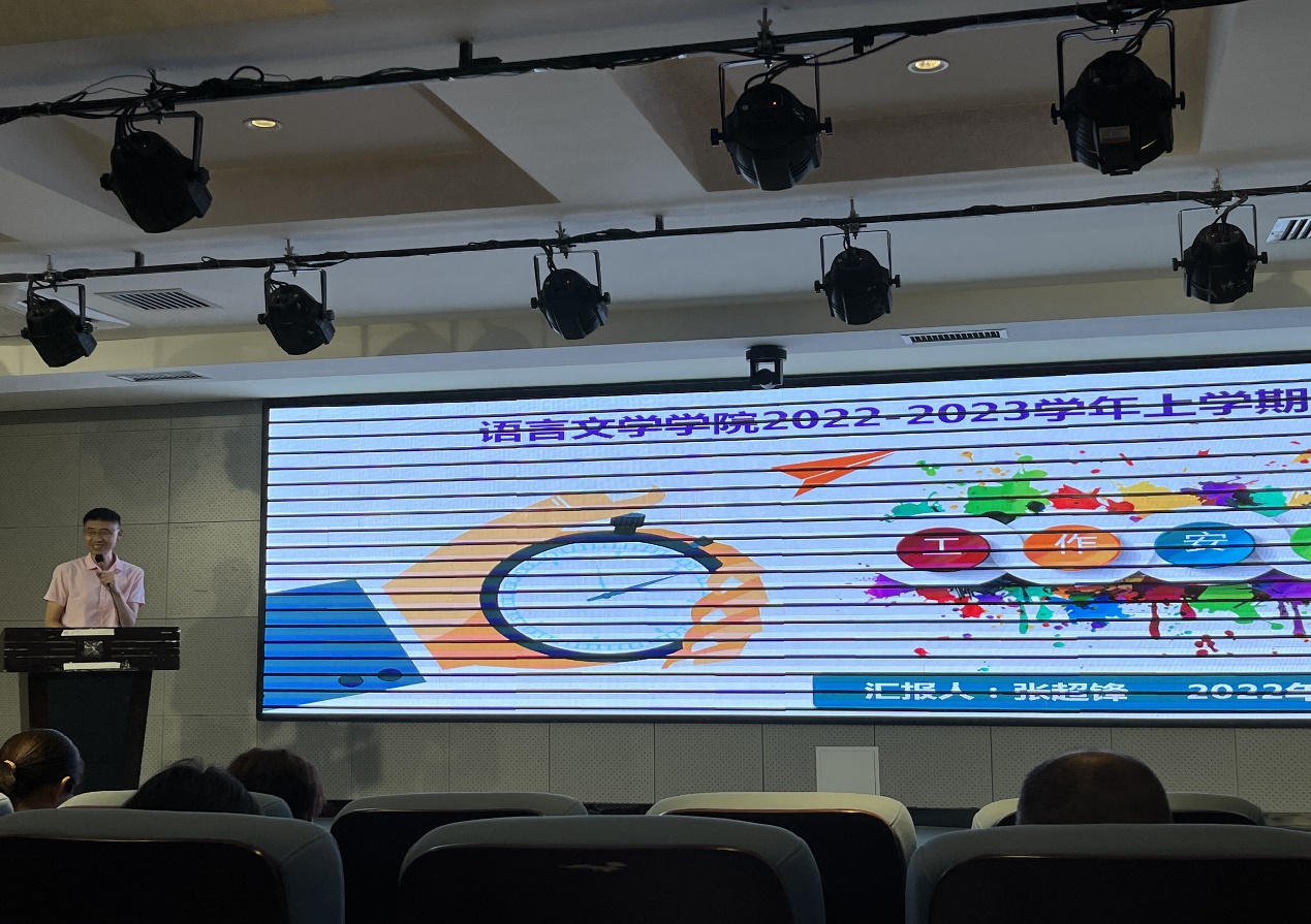 8月28日,语言文学学院在至善讲堂召开全院大会,何玲副校长、江仿书记、张超锋和陈锴副院长出席并做重要讲话,韦微副书记主持,学院根据疫情防控要求采取线上、线下相结合组织全体教师参加开学工作会议。