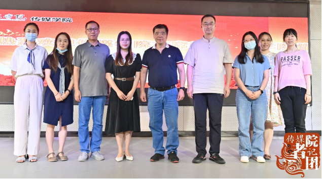 讲座结束后朱剑飞、魏文楷教授与传媒学院新闻与出版教研室教师合影留念
