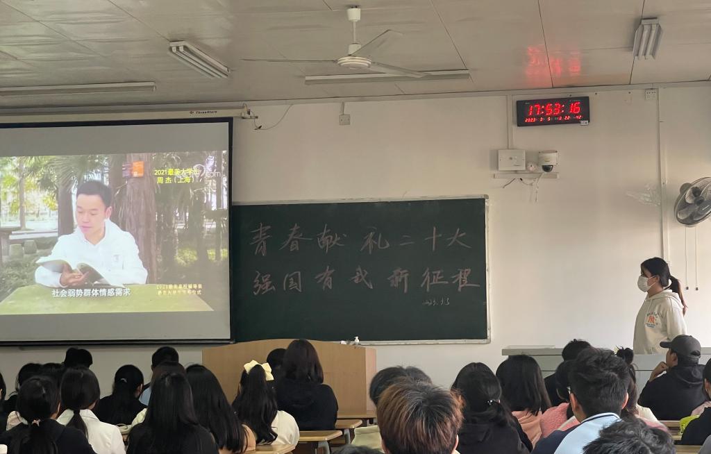 图:金融与法律学院在主题班会上组织观看《大学生年度人物》视频