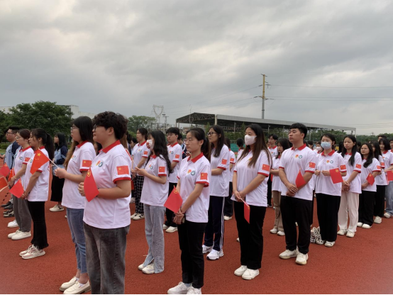 校团委书记王瑞老师在国旗下为同学们上了一堂别开生面的微团课。青马班学员代表韦馨惠同学在国旗下讲话中说到,“趁风华正茂之际,我们更应该以五四精神为不竭力量之源,树立远大人生追求与志向,筑造青春之梦。当前行的接力棒交到当代青年手中时,我们应该毅然挺起坚实的臂膀,在人民需要的时候挺身而出、迎难而上,用奉献绘就新时代青年的青春担当。”最后,升旗仪式在老师与同学举起手中的小红旗齐唱团歌中结束。