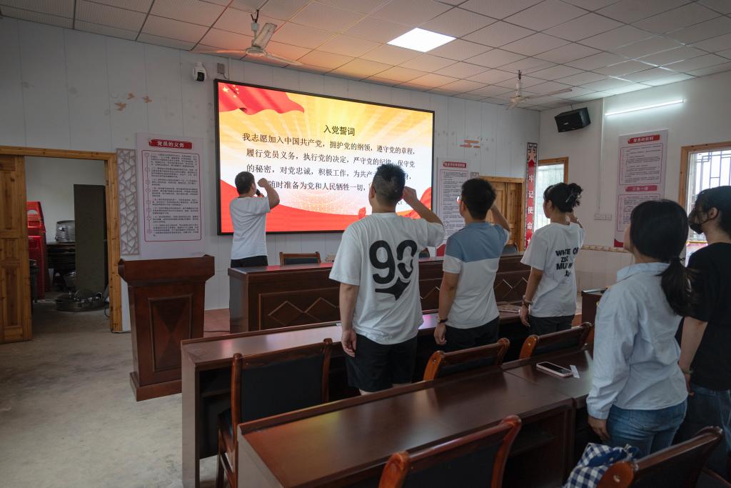 实地研学结束后,全体成员在象山区乡村振兴党员教育培训基地进行集中学习,两名学生党员代表分别上台分享了参观学习心得体会。预备党员黄华秀谈到:通过实地研学,深入了解到廉洁文化是秉公办事,不徇私情,不谋私利,为人民服务,清白做人。我们作为新时代的大学生要加强新时代廉洁文化理论知识的学习积累,不能丢掉艰苦奋斗、勤俭节约的优良传统,要以革命先烈精神指引前行,争当清廉先锋模范。正式党员黄悦表示:新时代大学生要学习弘扬廉洁精神,传承艰苦奋斗、开拓进取、勇于担当、守正无私的伟大精神,从身边的小事做起,争创清廉先锋。全体党员在鲜红的党旗前庄严整齐列队,面对党旗,高举右拳,重温了入党誓词,进一步坚定了自己的初心和使命。