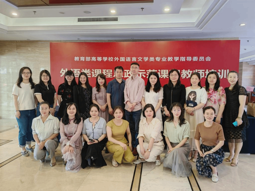 为深入实施《高等学校课程思政建设指导纲要》,在教育部高等教育司指导下,教育部高等学校外国语言文学类专业教学指导委员会外语类课程思政示范课程教师培训于5月19日—21日在广西桂林举办。人文学院副院长张超锋带队,人文学院英语、商务英语、翻译、大学英语、泰语、越南语教研室主任及一线教师代表参加了本次线下培训,人文学院其他外语教师线上参加了本次培训。