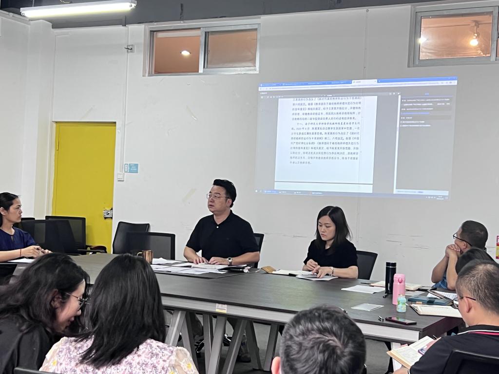 陈俊杰书记对学校师德师风建设政策进行解读,并围绕教师的职业道德、教育伦理、师德师风等方面进行了深入探讨,通报教育部公开曝光第十二批七起违反教师职业行为十项准则的典型案例,引导教师以案明纪、做到警钟长鸣。