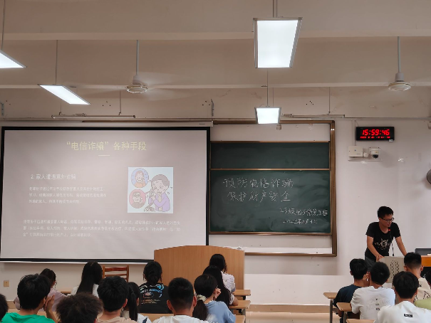 为提高新生预防电信诈骗的意识与保护财产安全的能力,9月10日下午,理工学院2023级电子信息工程专业在至善楼1402教室开展校园安全教育之预防电信诈骗与保护财产安全活动。新生班助梁抒予主持本次活动,2023级专业新生参加活动。