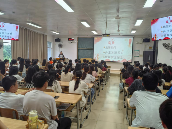上课前,班干对全班学生进行点名,准确了解学生在校情况。随后,该专业辅导员向学生详细介绍了学校关于中秋国庆的放假安排和要求,并从防溺水、防诈骗、交通、旅游、饮食等多方面给学生上了一节生动具体的安全教育课。
