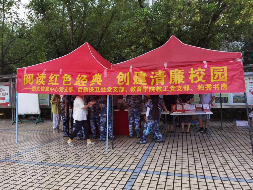 为了加强红色教育,推进我校清廉校园建设,图文信息中心党支部、后勤保卫处党支部、教育学院教工党支部联合独秀书房,开展“阅读红色经典 创建廉洁校园”图书推介活动。