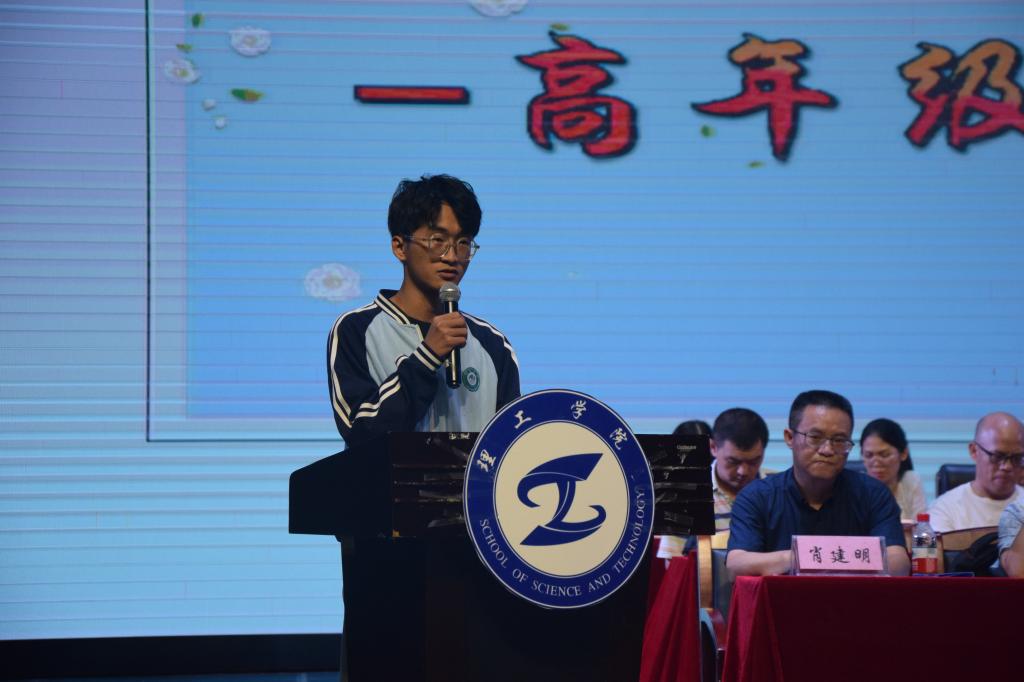 首先,理工学院院长李红波致辞,他对全体新生加入理工学院大家庭表示热烈的欢迎,介绍了理工学院的专业设置、建设概况,以及学院师生参与学科竞赛活动的获奖情况。同时李红波院长还向新生提出三点建议与希望:一是立志高远,胸怀“国之大者”;二是笃学力行,练就过硬本领;三是踔厉奋发,勇担时代使命。其次,计算机科学与工程教研室肖建明老师作为教师代表着重强调新生入学后要合理规划,夯实专业基础,锻炼专业能力,并给出大学为人处世的建议。再次,2021级电子信息工程专业赵度稳、2023级计算机科学与技术专业李思雨分别作为老生和新生代表从各自身份出发,结合在校经历发表自己的感言。