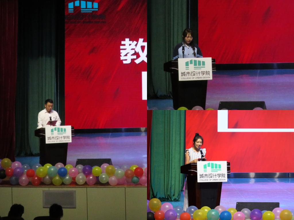 环境设计教研室张奇作为教师代表发言,他为新生们今后在城市设计学院的学习和生活提出四点希望:一是要明确目标;二是要有实现目标的思路;三是要珍惜当下,付诸行动,并持之以恒;四是要分析结果,进行整理并总结。他希望同学们学会自我约束、自觉学习,保持良好健康的身心,做一个诚实守信的大学生。